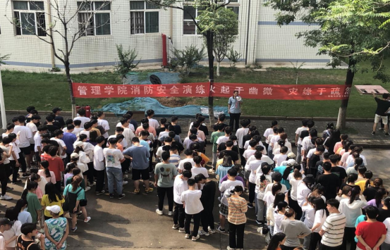 本次演练特别邀请校保卫处魏建岭老师对学院师生进行防火、防震知识培训。对遇险时要保持冷静、禁乘电梯、辨别方向、做好防烟等自救措施进行了说明,普及了遇到火灾、地震等险情的应急疏散知识,演示了如何正确使用灭火器、如何灭火等安全技能。随后,在模拟演练环节,同学们在辅导员的引导下,捂住口鼻、低姿、快速、有序地从教学楼疏散到室外指定位置,并亲自上手使用灭火器。消防安全演练取得圆满成功。